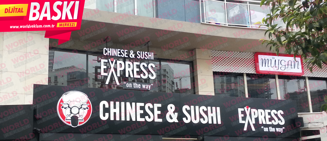 Chinese & Sushi Express on yhe way için yaptığımız kompozit oyma ve pleksi kutu harf tabela hizmeti yapılmaktadır. Farklı sektörlerde ihtiyaç olunan kompozit oyma tabela ve pleksi kutu harf modellerini firmamızdan veya www.worldreklam.com.tr den ulaşabilirsiniz.
