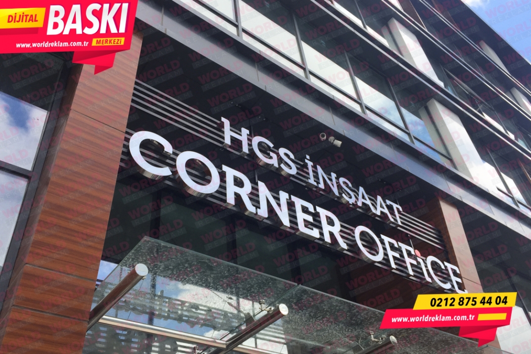 Beylikdüzü'nde bulunan Corner Office için yapmış olduğumuz pleksi kutu harf tabela örneğidir,