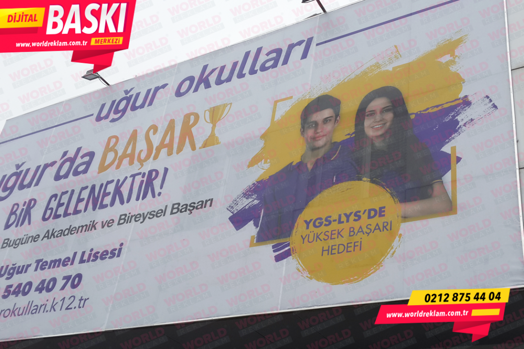 We manufacture vinyl stretch signs in our advertising company located in Beylikdüzü. Uğur Schools is an example of Vinyl Stretch sign.
